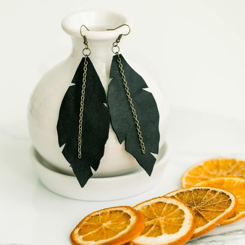 Amy Gates: I was inspired after seeing a pair of chicken feather earrings a friend had made and decided to try my hand at it as well. After that, I started buying leather jackets from thrift stores and making upcycled leather earrings too. It evolved from there to using soda and beer cans and tins. I love taking something old and making it into wearable art!