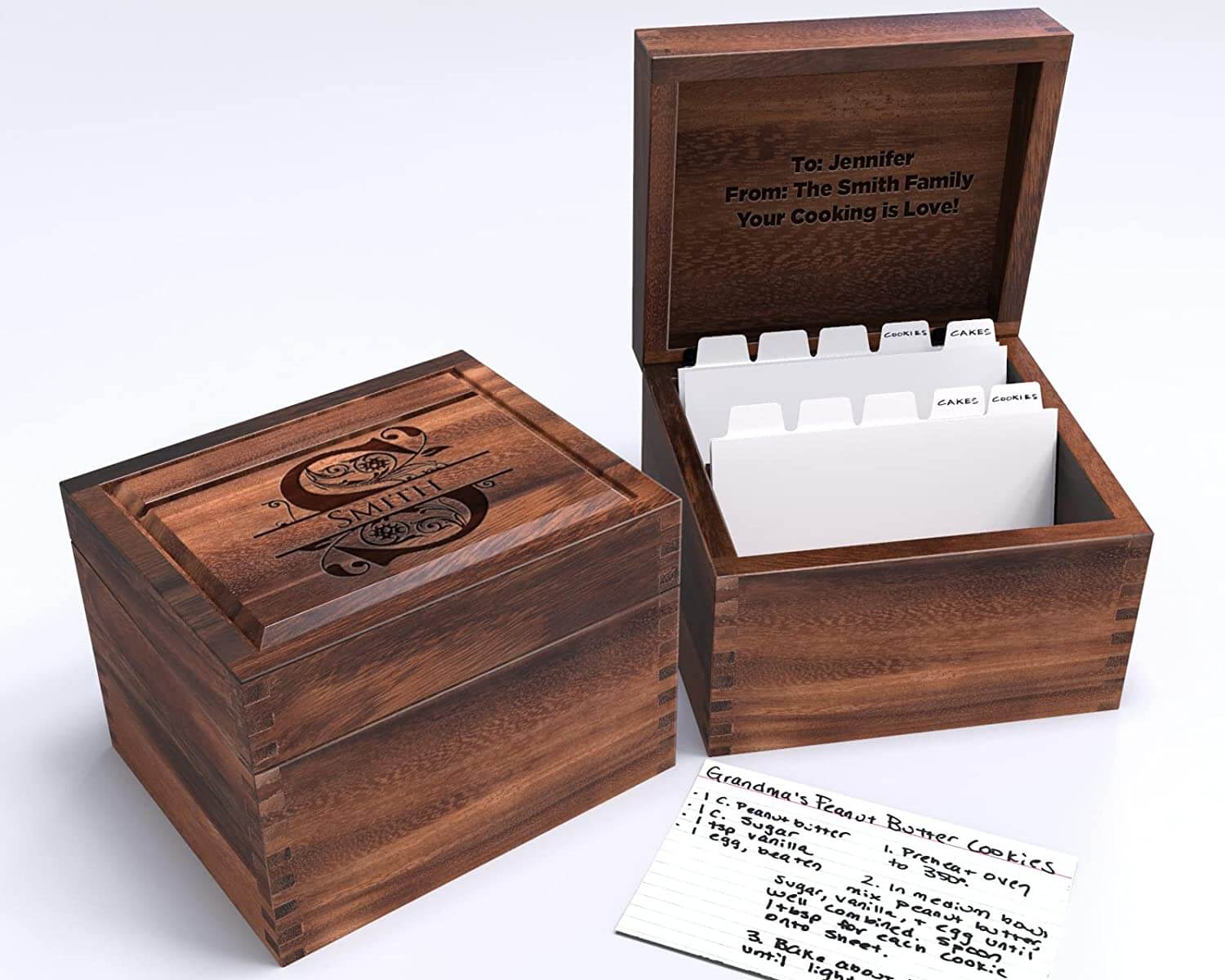 The baker in your life can organize and store in a heirloom-quality recipe box by Sinclair Custom Products. Imagine beloved family recipes for cakes, cookies and pies passed down from generation to generation.